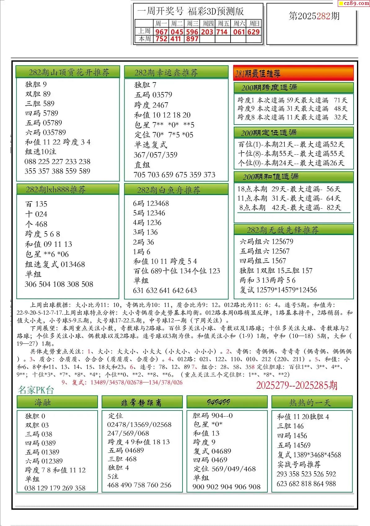 正版藏机25年282期3D图谜