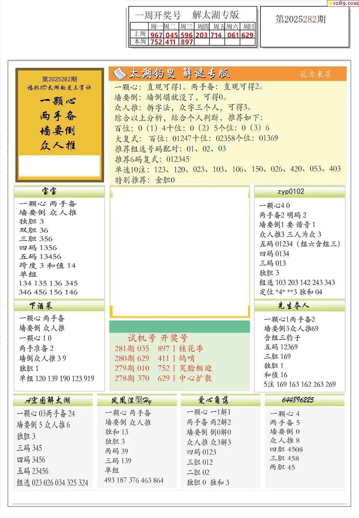2025282期解太湖3d字图迷汇总报