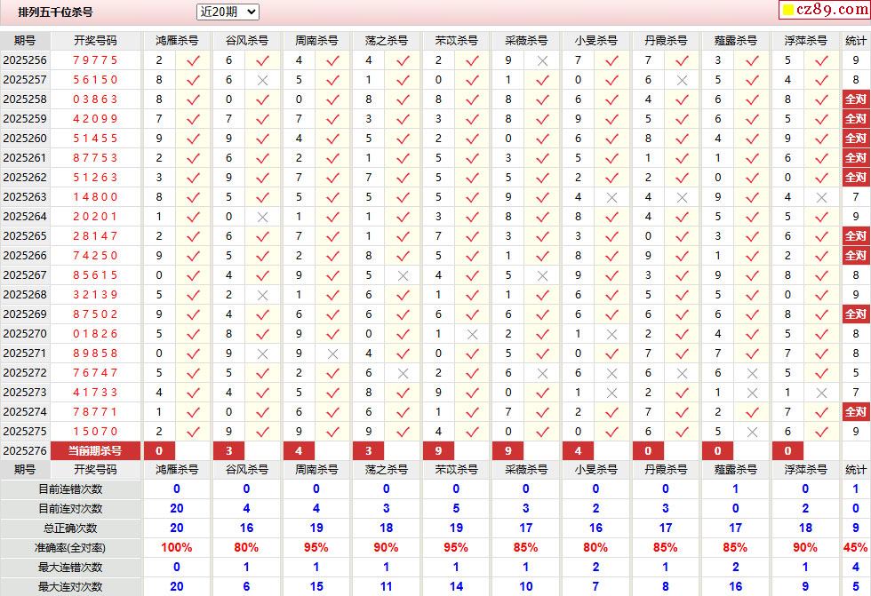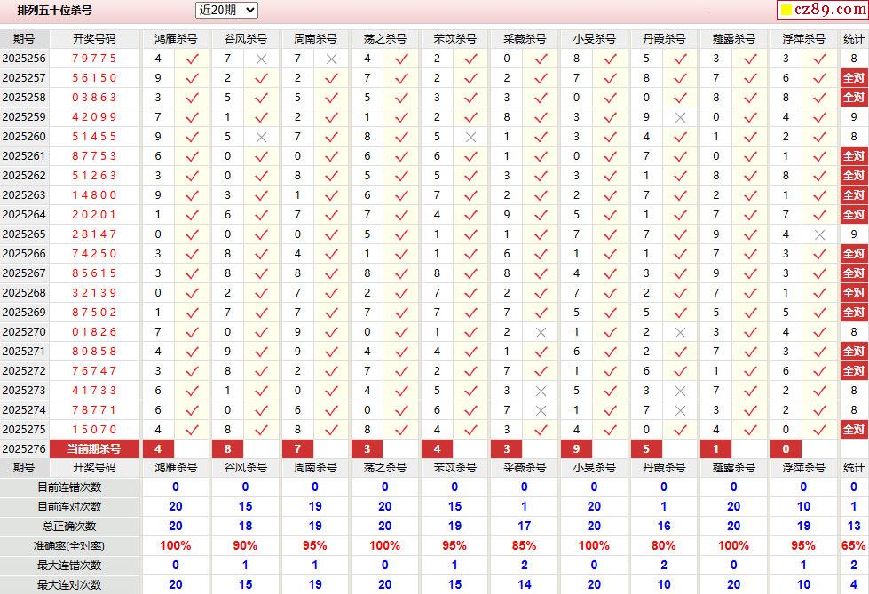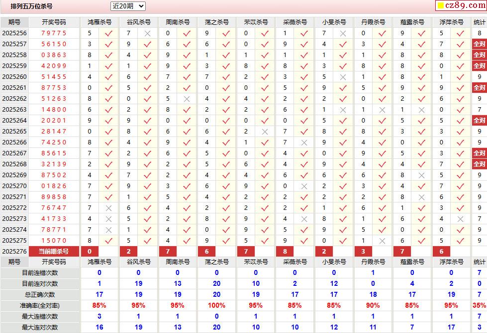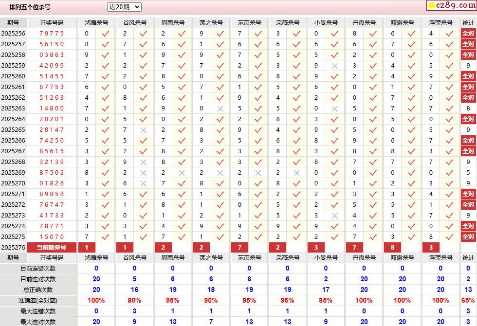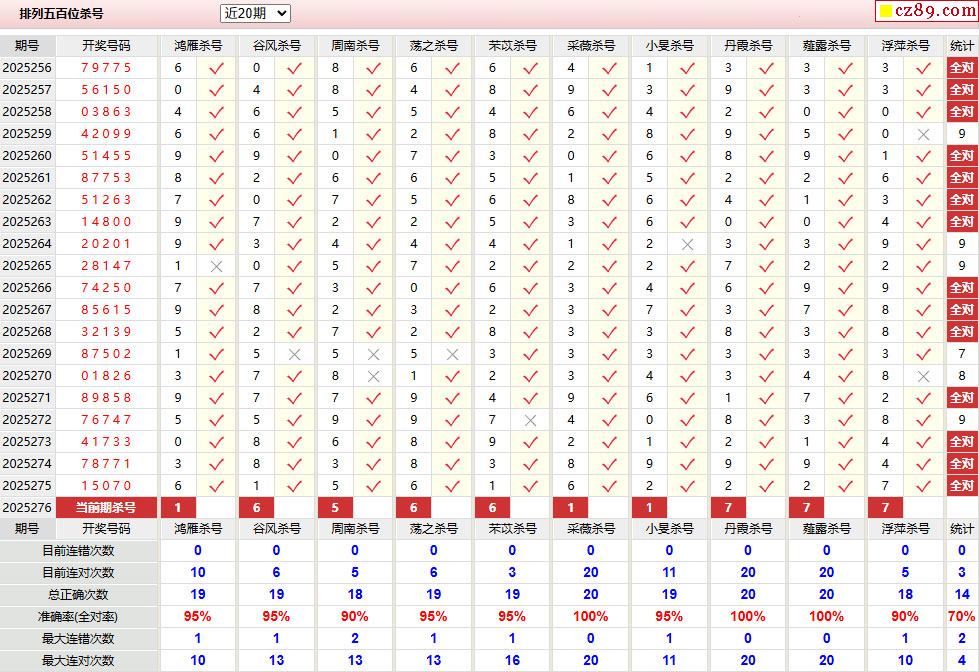 > 276期彩票专家体彩P5杀号推荐图表